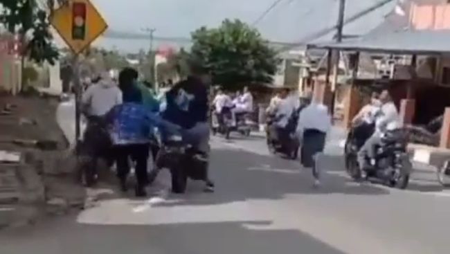 Dilihat detikSumut pada video viral, Jumat (18/8/2023) terlihat puluhan pelajar menggunakan sepeda motor melintas di depan sebuah sekolah. Terlihat seorang guru mengenakan batik biru mengejar dan menahan bagian belakang dari sepeda motor.