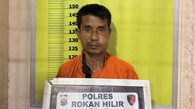 Agus (50) ditangkap setelah membunuh secara sadis mantan istrinya Aidah di kebun sawit milik warga di Rokan Hilir (Rohil), Riau. Begini penampakan Agus usai di kantor polisi.