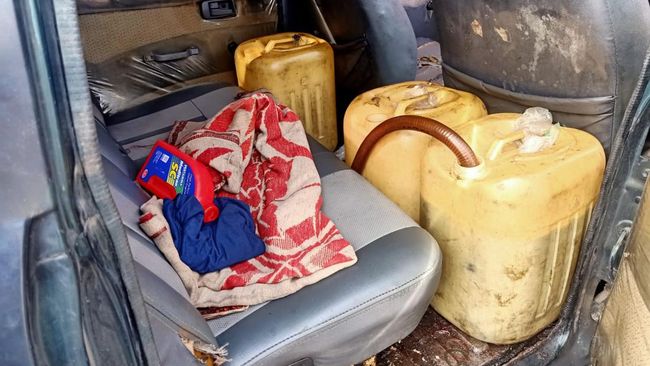 Donny menyebutkan di dalam mobil itu ditemukan BBM jenis solar sebanyak 30 liter yang berada di salam jeriken. Ada pula jeriken kosong, beberapa plat kendaraan, dan uang Rp 800 ribu.