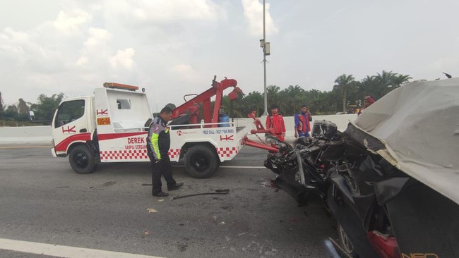 "Kejadian pukul 14.20 WIB, lokasi ruas Tol Permai KM 46/200 Jalur A, Kandis, Siak," kata Budi, Sabtu (4/11/2023).