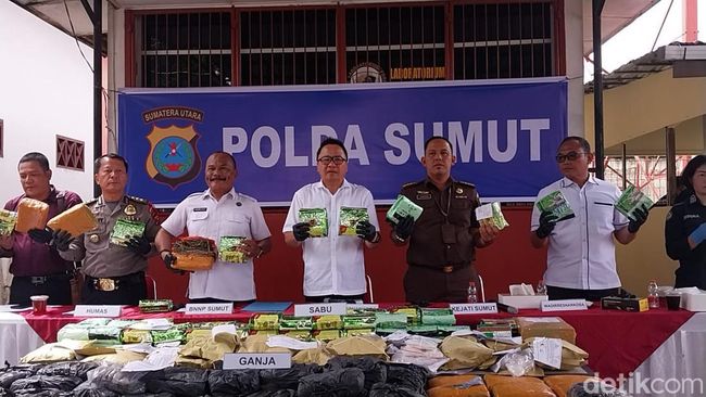 "Untuk jumlah barang bukti sabu-sabu (seberat) 102,5 kilogram dan ganja seberat 124 kg," terang Dirresnarkoba Polda Sumut, Kombes Yemi Mandagi saat konferensi pers di Mapolda Sumut, Rabu (8/11/2023).