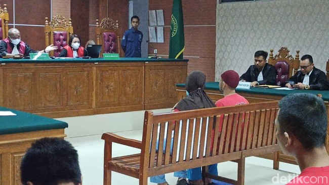 Saat sidang dengan agenda pledoi tersebut dimulai, kedua pasangan istri itu langsung menangis ketika duduk berhadapan dengan majelis hakim. Kedua pasangan suami istri ini didakwa dengan pasal 363 KUHP, atas tindak pidana pencurian dengan masa hukuman maksimal 1 tahun 6 bulan penjara.