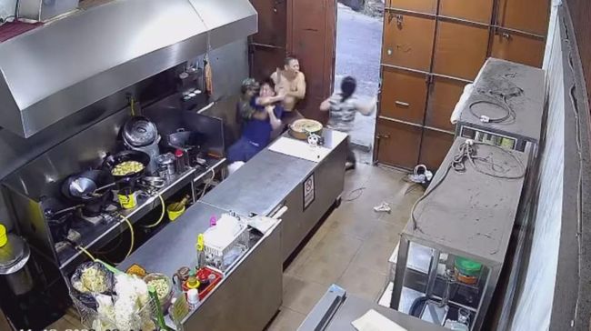 Dari video yang berdurasi beberapa detik tersebut tampak seorang wanita berlari mencoba membuka pintu rukonya. Kemudian ia dihadang seorang pria yang memegang parang hendak menghalanginya membuka pintu.