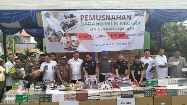 Bea dan Cukai Aceh memusnahkan satu juta batang rokok ilegal serta mainan seks yang disita dalam kurun waktu 2022 dan 2023. Penyelundupan barang tersebut menyebabkan kerugian negara Rp 1 miliar.