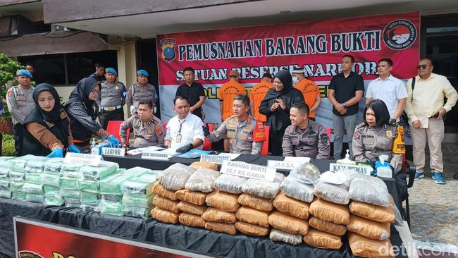 "Dari September 2023 sampai saat ini kami ungkap berbagai kasus dengan tersangka 232 orang (ditangkap). Barang bukti 78,3 kg sabu, 2,6 kg ganja, dan 283 butir ekstasi," kata Kapolrestabes Medan Kombes Valentino Alfa Tatareda saat konferensi pers pemusnahan barang bukti narkoba di Mako Polrestabes Medan, Kamis (30/11/2023).