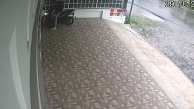 Dalam video berdurasi 1 menit 22 detik itu terlihat seorang pria yang mengendarai sepeda motor datang ke bagian teras toko warga.