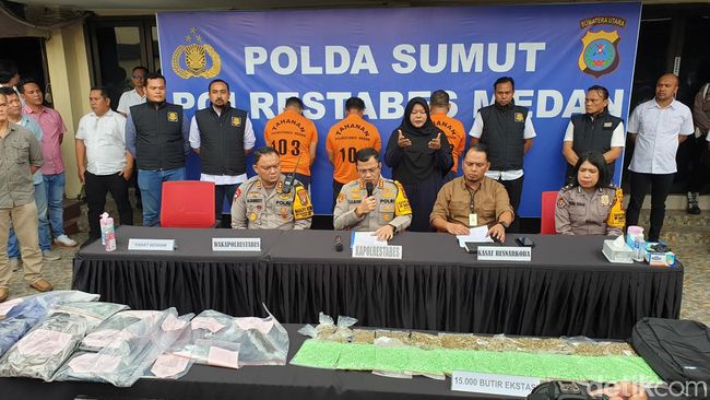 "Hasil pengungkapan narkoba selama tahun 2023 Polrestabes Medan dan jajaran berhasil mengungkap kasus narkoba sebanyak 815 kasus dan tersangka sebanyak 952 orang," kata Kapolrestabes Medan Kombes Teddy Jhon Marbun saat paparan akhir tahun, Jumat (29/12/2023).