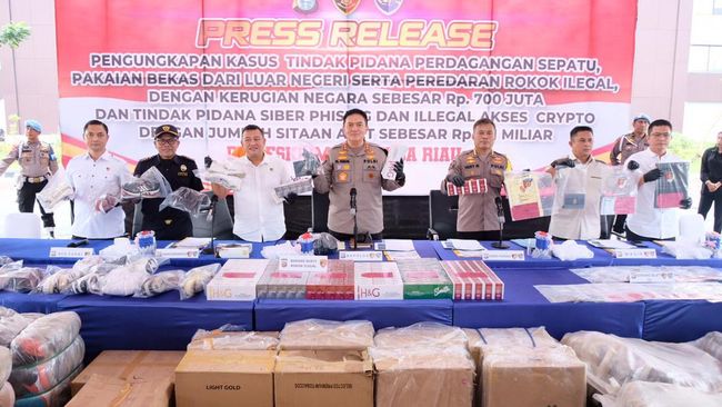 Direktorat Reskrimsus Polda Riau membongkar perdagangan rokok ilegal, perdagangan barang bekas hingga kasus kejahatan siber. Jumlah aset yang disita mencapai miliaran rupiah.