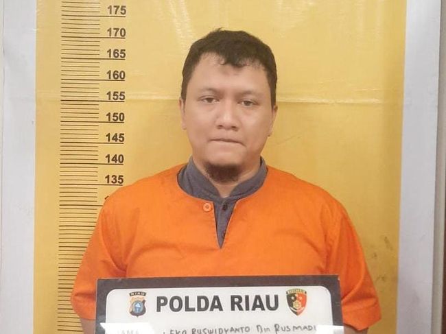 Dari foto yang diterima detikSumut Rabu (28/2/2024) kedua tersangka berfoto dengan latar belakang Ditreskrimsus Polda Riau. Keduanya juga menunjukkan identitas masing-masing.