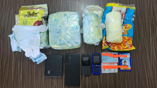 "Ditemukan narkotika jenis sabu sebanyak 4 bungkus dan serbuk putih. Kemudian dilakukan interogasi terhadap tersangka S, dia menerangkan narkotika jenis sabu dan serbuk putih tersebut akan dibawa ke Kota Dumai atas perintah seseorang yang masih DPO," kata Bimo.
