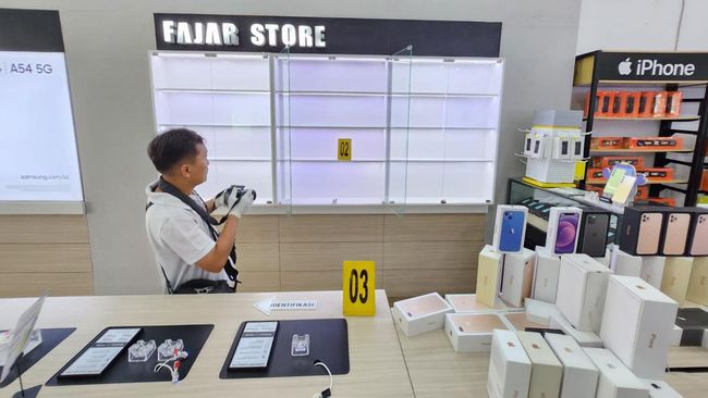 Pelaku langsung parkir depan toko ponsel Fajar Store yang ada di Jalan Delima. Aksi itu terekam jelas dari CCTV toko. "Kemarin pukul 03.58 WIB pada rekaman CCTV parkiran terlihat ada mobil Suzuki Karimun Wagon hitam parkir mundur di depan pintu rolling door toko. Lalu sekira pukul 04.15 WIB terlihat seorang laki baju kaos hitam, keluar dari pintu penumpang," kata Berry, Senin (18/3/2024).