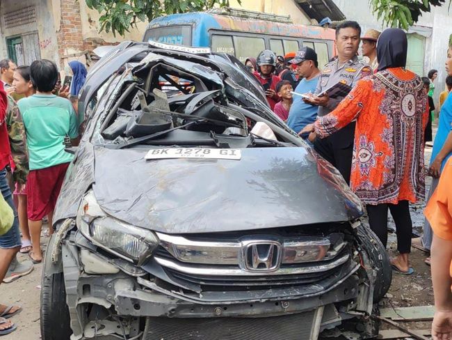 Seorang pengendara mobil mengalami tabrakan dengan kereta api saat melewati perlintasan kereta api, Jalan Paya Bakung, Kecamatan Sunggal, Deli Serdang. Akibatnya, empat penumpang yang ada dalam mobil meninggal dunia.