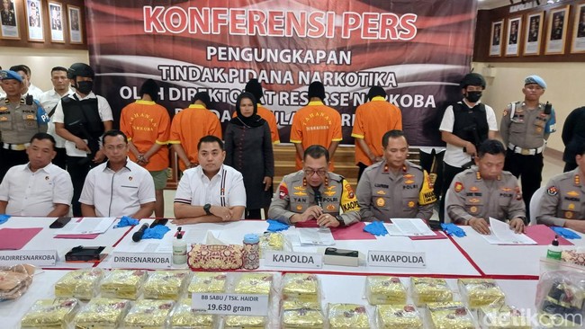 "Dari 44 pelaku ini 41 pria dan 3 wanita. Total narkotika jenis sabu yang diamankan ada 21,008 Kg, ini termasuk 19,6 kg yang diamankan dari HN, kemudian pil ekstasi sebanyak 1.124 butir dan ganja kering sebanyak 2,18 kilogram," ujarnya.