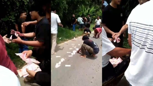 Peristiwa itu terjadi di Jalan Lintas Jambi-Muara Sabak, Senin (22/4/2024). Dari video yang beredar, tampak warga memungut lembaran uang Rp 100 ribu itu di pinggir jalan.