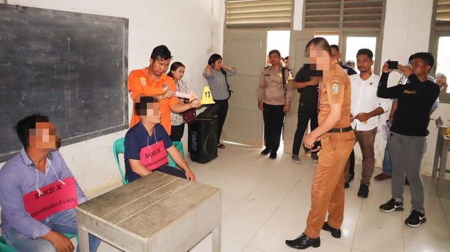 Polres Nias Selatan melakukan rekonstruksi terkait kejadian seorang siswa SMK bernama Yaredi Nduru (17), yang tewas usai diduga dianiaya kepala sekolahnya, SZ (37). Ada 17 adegan yang diperagakan dalam rekonstruksi itu.
