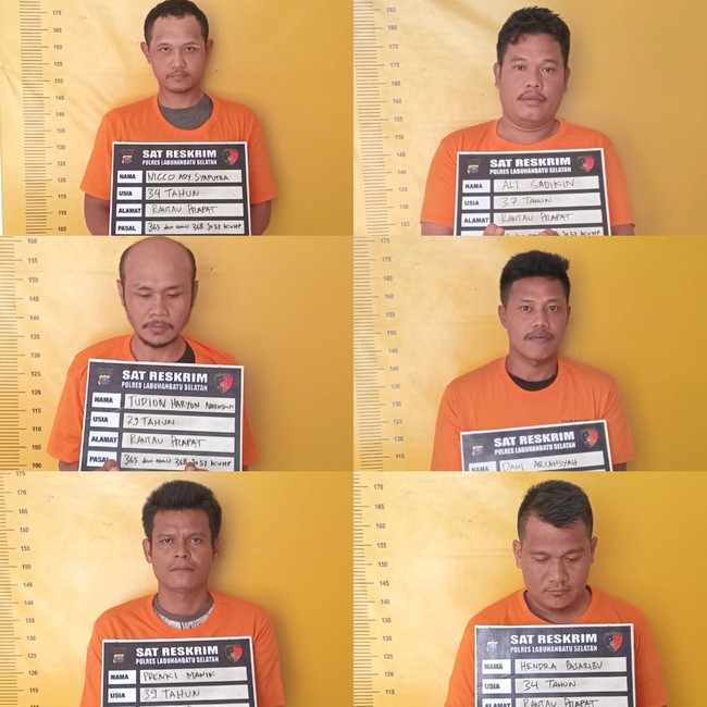 Adapun para pelaku yang telah ditangkap, yakni Prengki Manik (39), Hendra Pasaribu (34), Ali Sadikin Nababan (37), Tudion Haryon Nababan (28), Nico Ady Syahputra (34), dan Dani Ardiansyah (36), sedangkan dua pelaku yang masih buron, adalah Gunawan (34), dan Rais (36).