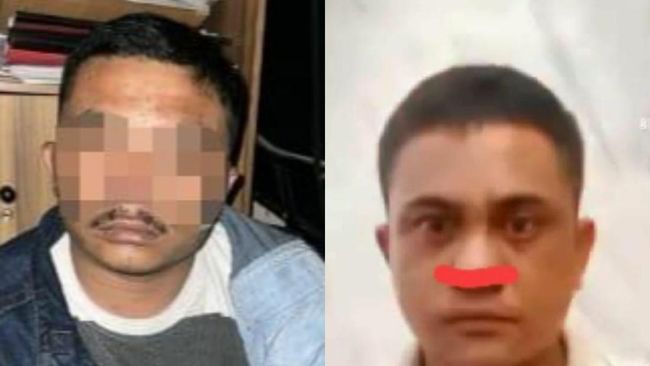 Polisi menangkap dua pelaku pembakaran rumah Sempurna Pasaribu, wartawan Tribrata TV di Kabupaten Karo, Sumatera Utara (Sumut). Ini tampang kedua pelaku tersebut.