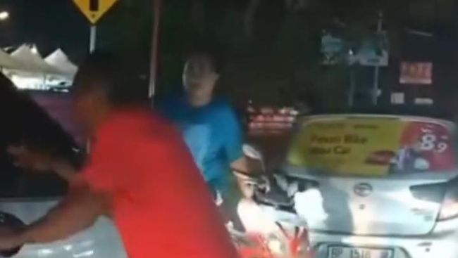 "Itu anak saya, itu anak saya, itu anak, itu anak," ujar pria berbaju merah sambil mencoba membuka pintu pengendara.
