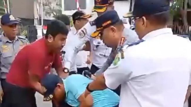 Dalam video yang dilihat, Selasa (13/8), terlihat seorang pria berbaju merah dikelilingi sejumlah petugas Dishub di depan Kantor Dinas P3AKB di Jalan Iskandar Muda, Medan. Pria tersebut terlihat cekcok dan saling dorong dengan petugas Dishub Medan.