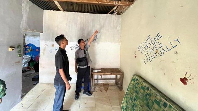 "Itu tulisan sudah lama, sudah ada sebelum korban meninggal. Untuk cap tapak tangan merah juga sudah lama, itu cat merah," kata Kasat Reskrim Polres Pelelawan, AKP Kris Rofel, Senin (19/8/2024).