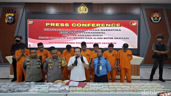 Polda Riau mengungkap kasus peredaran narkoba jaringan Internasional di Riau. Bahkan, dalam sepekan ini ada 76 Kg sabu dan 41 ribu butir ekstasi diamankan di sejumlah wilayah.