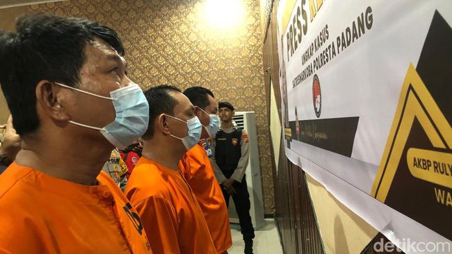 Foto: Keempat tersangka saat dihadirkan dalam rilis Polresta Padang (dok. Afdal/detikSumut)