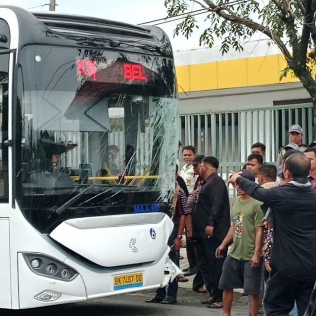 Janton mengatakan kejadian itu berawal saat bis listrik BK 7487 DQ tersebut melaju dari arah pusat Kota Medan menuju arah Belawan. Sementara dua mobil lainnya itu tengah parkir di pinggir jalan di depan bus listrik itu.