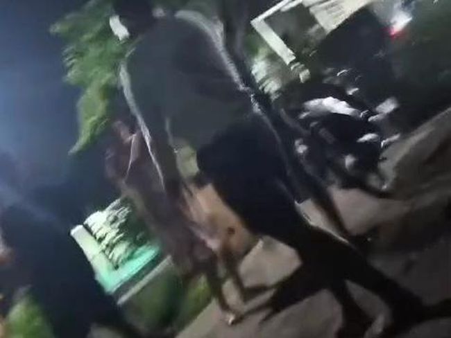 Ada juga orang yang berupaya menghentikan aksi para pria itu. Kemudian, terlihat ada seorang pria terlihat memegang suatu benda seperti senjata tajam.