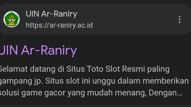 Situs resmi kampus UIN Ar-Raniry Banda Aceh diduga diretas. Ketika dibuka melalui pencarian Google, situs tersebut dialihkan ke website judi online (judol).