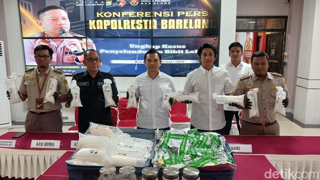 Polisi menemukan ribuan benih bening lobster di atas kapal penumpang tujuan Singapura di Pelabuhan Internasional Sekupang, Batam, Kepulauan Riau (Kepri). Sebanyak 11.543 ekor benih lobster tersebut ditaksir bernilai Rp 1,5 miliar.