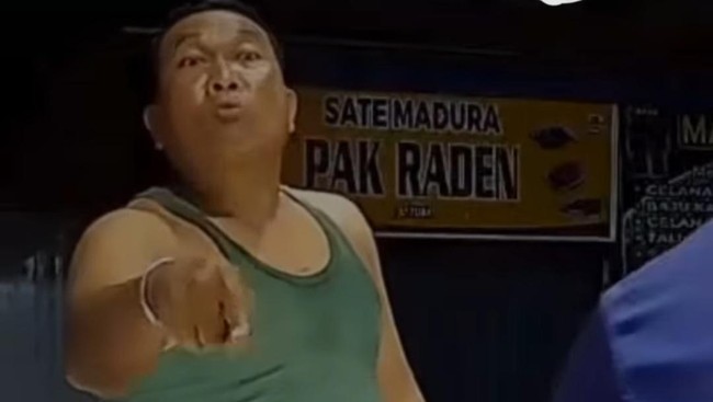 Keduanya terdengar terlibat cekcok. Pria berlaga preman itu beberapa kali memukul penjaga konter tersebut menggunakan kayu.