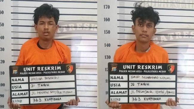 Kapolsek Medan Area Kompol Dwi Himawan Chandra mengatakan pencurian itu terjadi di Jalan Perisai Bumi Ujung, Kecamatan Medan Denai 16 Agustus 2025 sekira pukul 06.00 WIB. Sementara para pelaku ditangkap Jumat (22/8/2025). Adapun kedua pelaku, yakni Andika Pasaribu (20) dan Sait M Noval (21).