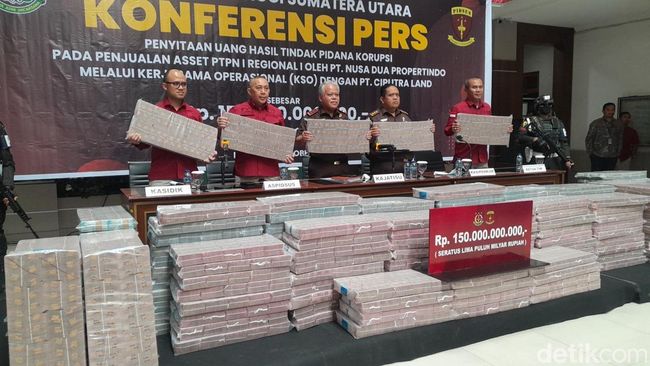 Kejaksaan Tinggi (Kejati) Sumatera Utara (Sumut) terus mengungkap dugaan tindak pidana korupsi dalam proses jual beli aset milik PTPN I Regional 1 kepada PT Ciputra Land dengan sistem kerja sama operasional. Saat ini sudah ada 3 tersangka yang ditetapkan dan penyitaan uang Rp 150 miliar.