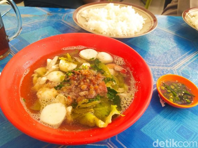 Sup ikan campur, biasanya dicampur bakso ikan dan udang yang saat dinikmati terasa begitu olahan daging ikan dan udang begitu terasa.