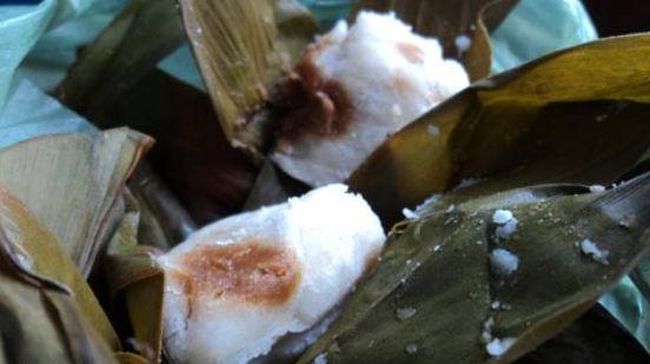 Kudapan tradisional ini terbuat dari tepung beras dengan isi gula aren campur kelapa parut dan dibungkus menggunakan daun bamboo.