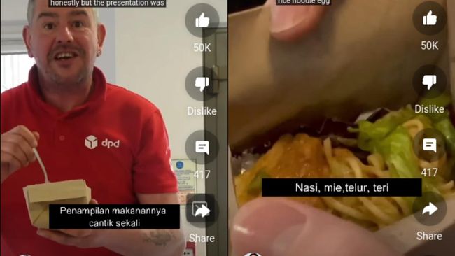 "Jujur, aku tidak pernah melihat nasi bungkus seperti ini sebelumnya. Enak sekali jujur! Penampilan makanannya cantik sekali," puji bule Inggris berbaju merah tersebut dikutip dari detikFood.