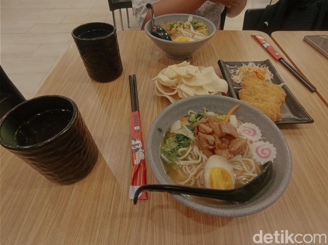· Menu ramen seperti Sapporo Garlic Sesame Ramen, Spicy Dry Ramen, dan dua Tehbotol Sosro Kotak.