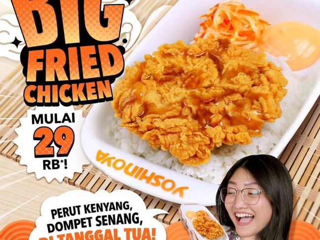 Yoshinoya memberikan promo Super Deal mulai harga Rp 31 ribu untuk menu big fried chicken+nasi atau chicken karaage+nasi.