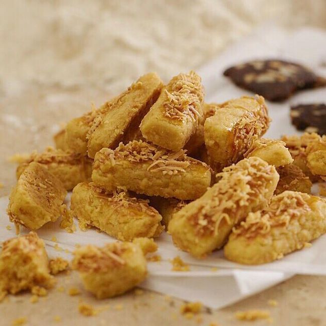 - Campur terigu, vanilla, garam, gula halus, kacang tanah sangrai yang dihaluskan