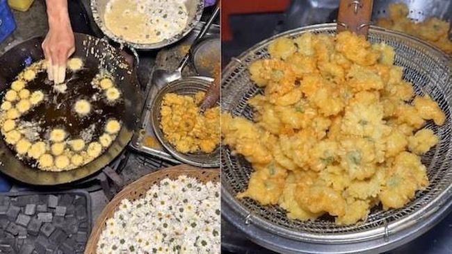 Dalam video di Instagram @foodiiiijunction, penjual itu terlihat mencampurkan bunga daisy itu ke dalam adonan tepung. Usai seluruh permukaan bunga sudah diselimuti tepung, barulah dimasukkan ke dalam penggorengan.