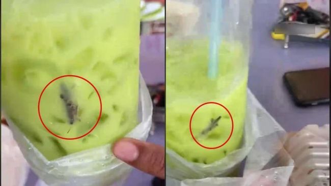 Seorang pelanggan menemukan hewan di pesanan minuman green tea. Hewan itu adalah belalang yang sudah dalam keadaan mati.
