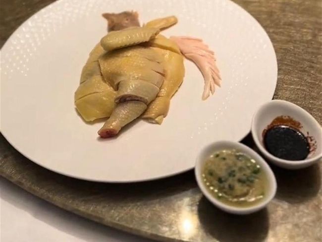 Dalam unggahannya, ayam rebus itu berwarna putih kekuningan tersebut ukurannya kecil. Ayamnya hanya disajikan dengan dua jenis saus di wadah terpisah sebagai cocolan.