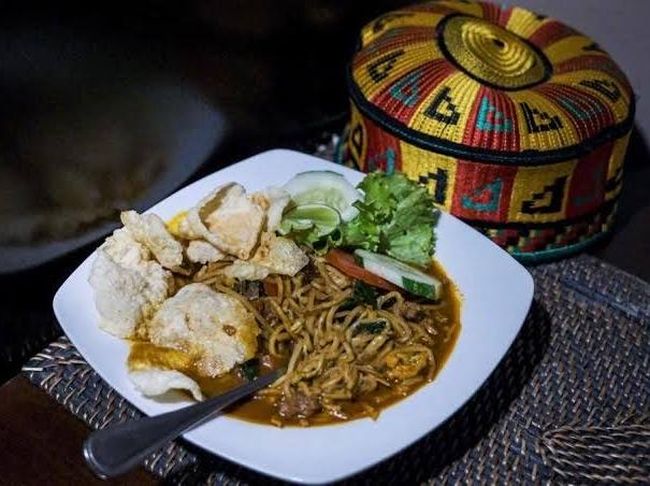 Mi kuning tebal yang dimasak bersama daging atau seafood ini, paling sedap disajikan panas-panas dengan bawang goreng, acar mentimun, dan perasan jeruk nipis.