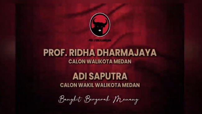 PDIP resmi mengusung Ridha Dharmajaya berpasangan dengan Adi Saputra di Pilwalkot Medan 2024. Hal itu diumumkan hari ini di Jakarta.