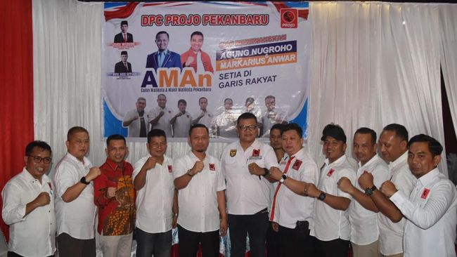 Dewan Pimpinan Pusat (DPP) Pro Jokowi (Projo) resmi memberikan mendukung pasangan Agung Nugroho-Markarius Anwar di Pemilihan Wali Kota Pekanbaru. Dukungan dituangkan ke dalam surat keputusan DPP Projo yang diteken langsung Ketua Umum, Budi Arie Setiadi.