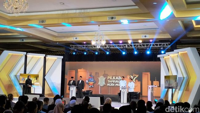 Konferensi pers dihadiri pasangan Mualem-Dek Fadh serta ketua partai pengusung dan pendukung. Sejumlah pendukung pasangan calon nomor urut 02 ikut mendampingi.