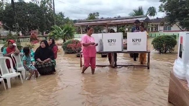 "Proses pemungutan suara susulan hari ini di TPS 02 dan 06 Desa Piasa Ulu harus tetap kita laksanakan serentak pada pukul 10.20 WIB. Kondisinya untuk TPS 06 itu tidak ada genangan air, kalau di TPS 02 itu masih banjir dan proses pemungutan tetap kita lakukan walaupun genangan air itu antara 20-30 sentimenter," kata Hidayat, Ketua KPU Asahan saat dikonfirmasi detikSumut.