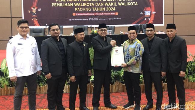 Komisi Pemilihan Umum (KPU) Kota Padang resmi menetapkan pasangan Fadly Amran-Maigus Nasir sebagai Wali Kota dan Wakil Wali Kota Padang terpilih untuk periode 2025-2030. Penetapan ini sebelumnya sempat tertunda karena adanya sengketa hasil Pilkada yang diajukan pasangan Hendri Septa-Hidayat ke Mahkamah Konstitusi (MK).