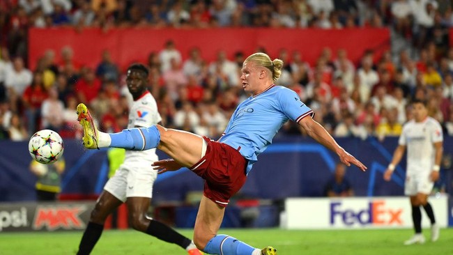 Juara Liga Inggris musim lalu Manchester City menggila saat tandang ke Spanyol untuk menghadapi Sevilla. Meski bermain jauh dari pendukung, The Citizen menang dengan skor telak 0-4. Stiker City, Erling Haaland pada laga itu mencetak brace.