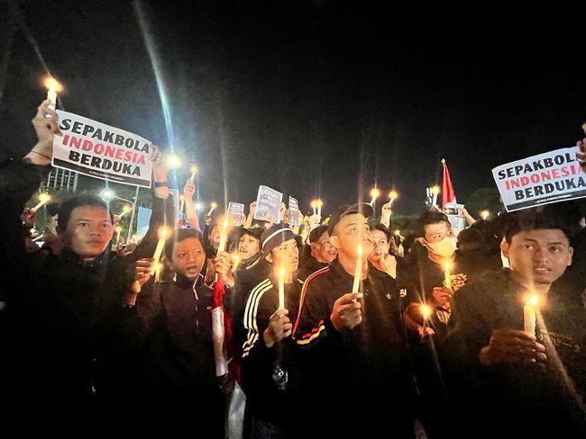 Mereka menyalakan lilin sebagai bentuk duka terhadap para korban yang tewas tragedi Kanjuruhan di Malang, Jawa Timur. Dilansir dari detikNews, Minggu (2/10/2022), aksi mereka dilaksanakan mulai dari Jl Asia Afrika. Para simpatisan tersebut terlihat mulai berdatangan ke depan Pintu 1 GBK sejak pukul 19.00 WIB. Mereka tampak mengenakan berbagai macam kostum club sepak bola.